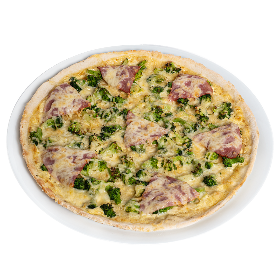 Pizza mit Sauce Hollandaise, Brokkoli, Schinken und GoudaNormaler Preis Ab €13,49Normaler PreisGrundpreis / proVerkaufspreis Ab €13,49 -